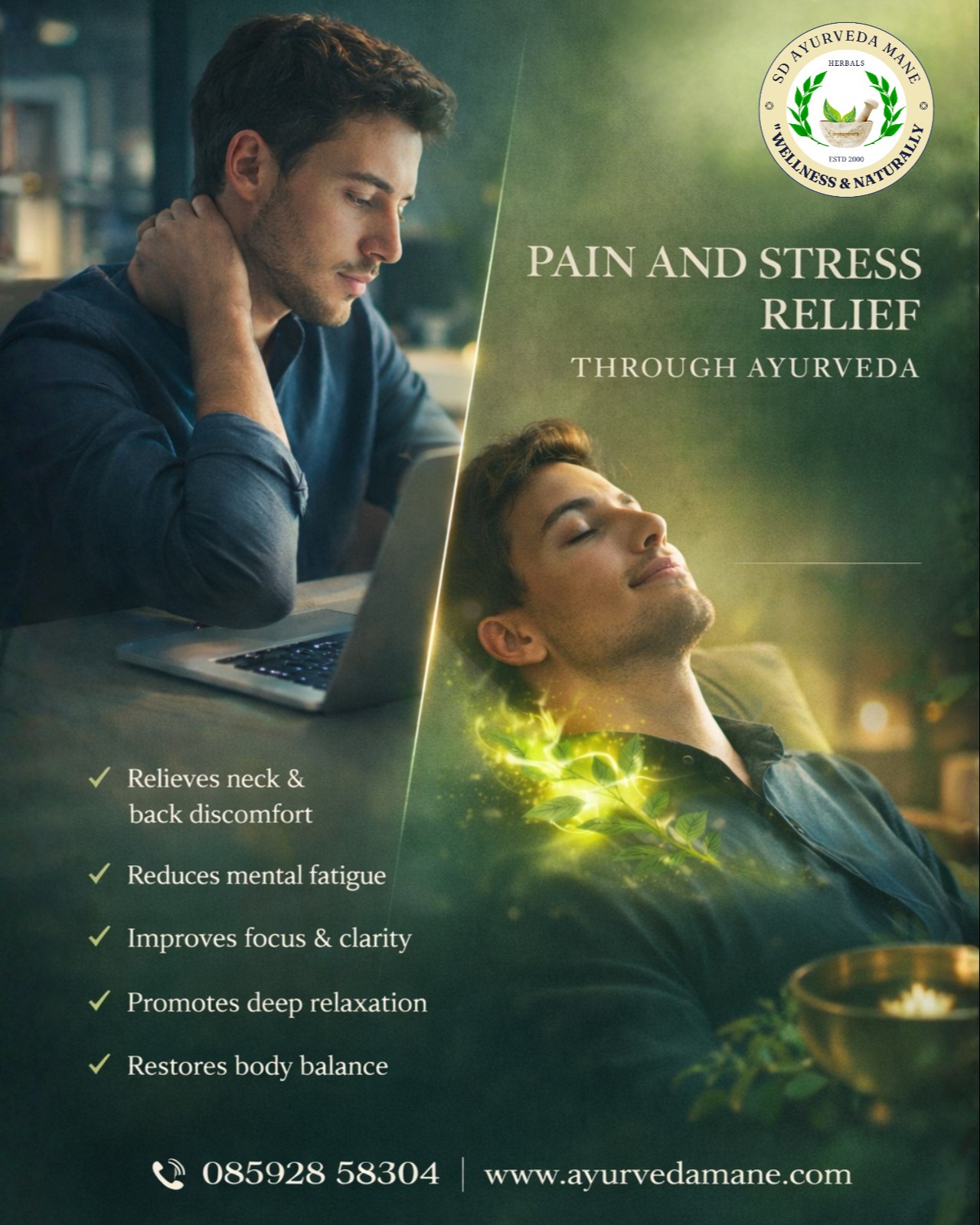 SD Ayurvedamane offers effective stress and pain relief Ayurveda treatments in Electronic City, Bangalore, combining traditional healing with modern wellness needs. Located in the heart of Electronic City, SD Ayurvedamane specializes in personalized therapies designed to reduce stress, relieve chronic pain, and restore overall balance. Using authentic Ayurvedic techniques like Abhyanga, Shirodhara, and herbal treatments, their expert practitioners target issues such as back pain, neck stiffness, migraines, and work-related stress. Whether you’re an IT professional or someone seeking natural healing, SD Ayurvedamane provides holistic solutions that rejuvenate both body and mind. Experience safe, chemical-free wellness with trusted Ayurveda care in Bangalore.