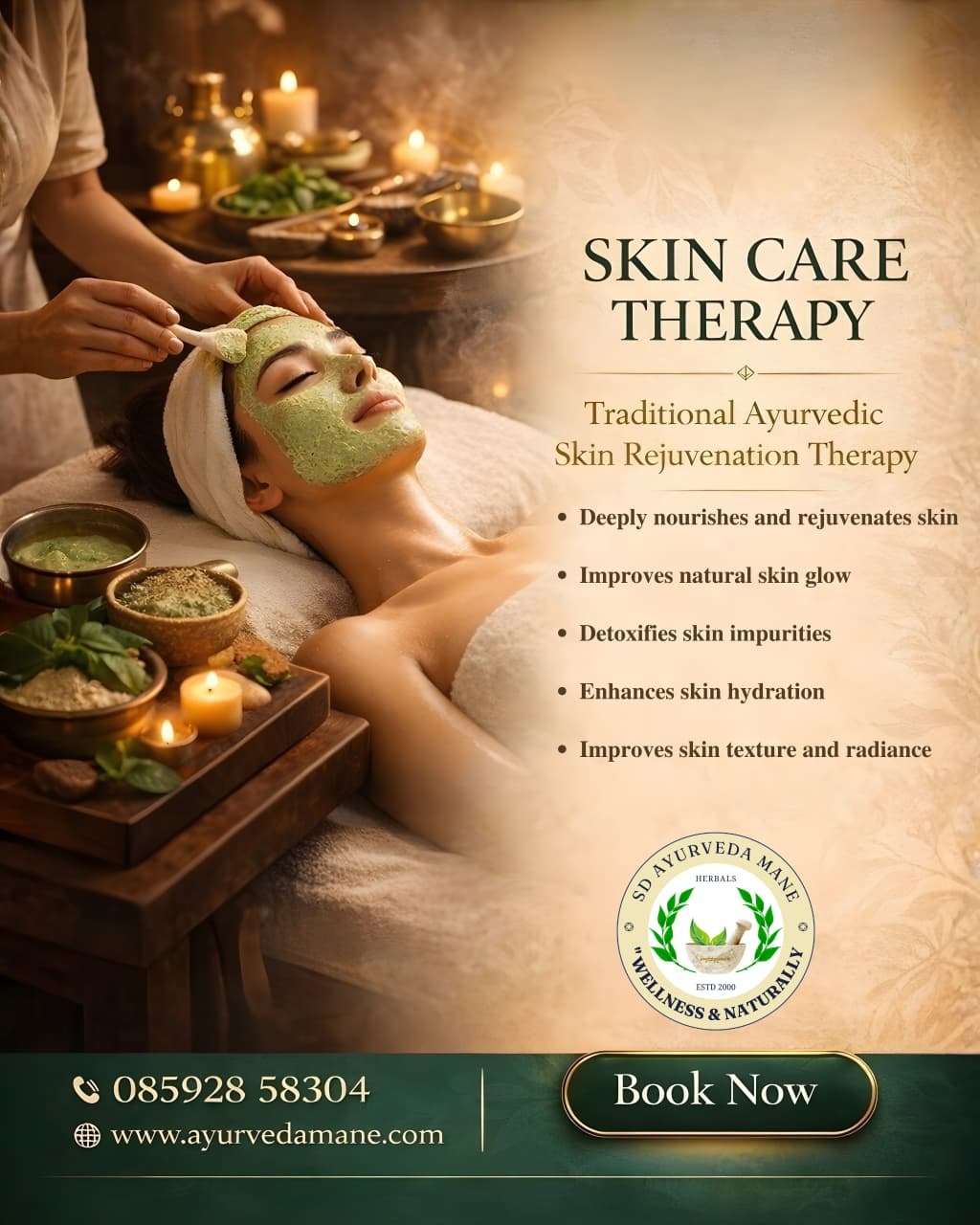 If you are looking for natural and effective skin care solutions in Electronic City, SD Ayurveda Mane offers authentic Ayurvedic skin care therapies designed to restore your skin’s natural glow and health. With a holistic approach rooted in traditional Ayurveda, the clinic provides customized treatments that address common skin concerns such as acne, pigmentation, dull skin, dryness, premature aging, and uneven skin tone. Each therapy is carefully designed using herbal oils, natural ingredients, and Ayurvedic techniques that help detoxify the skin, improve blood circulation, and nourish the skin from within. At SD Ayurveda Mane in Electronic City, Bangalore, experienced Ayurvedic practitioners analyze your skin condition and body constitution before recommending the most suitable treatment plan. The therapies not only focus on external care but also emphasize internal balance, which is essential for long-lasting skin health. These treatments are gentle, chemical-free, and suitable for people who prefer safe and natural skincare solutions. Whether you want to rejuvenate your skin, treat chronic skin issues, or maintain healthy and radiant skin naturally, SD Ayurveda Mane’s skin care therapies in Electronic City provide a trusted Ayurvedic solution. With a peaceful healing environment and personalized care, the clinic has become a preferred destination for those seeking authentic Ayurvedic skin treatments in Bangalore.